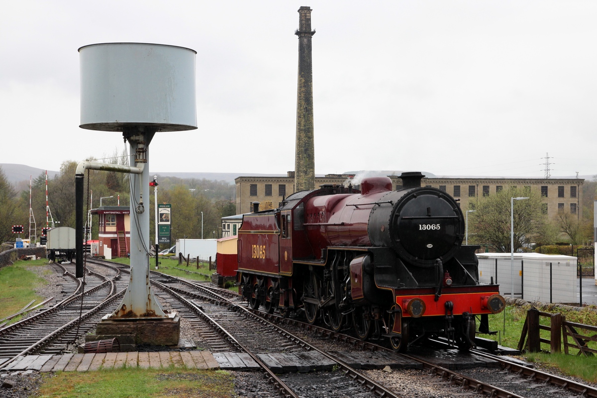 Die 1927 bei LMS Crewe gebaute 13065 der LONDON MIDLAND & SCOTTISCH RAILWAY COMPANY in der Stn. Bury Bolton Street am 27.04.2018 beim Wasser fassen. Rüdiger Ulrich