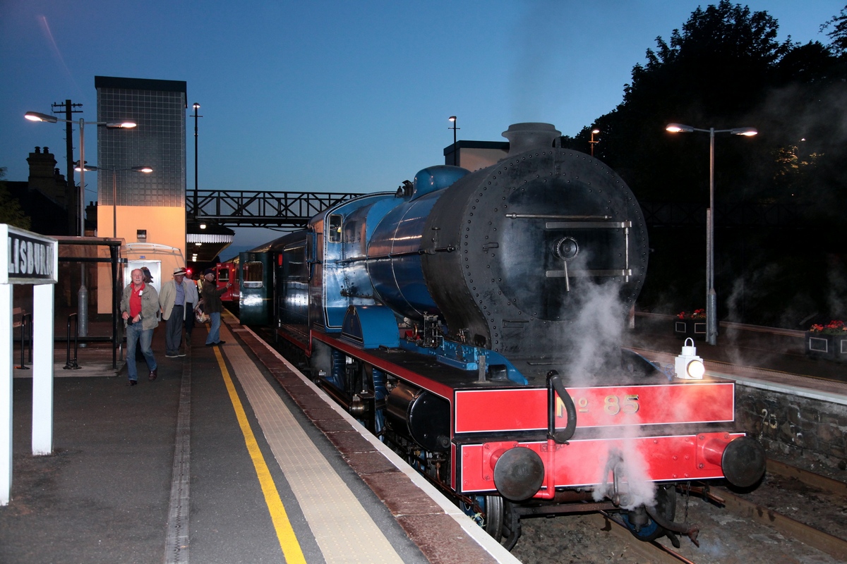 Die Class V No. 85 MERLIN der Great Northern Railway Ireland (Beyer, Peacock & Company Manchester, Bj. 1932, Serial-Number 6733) unterwegs mit der "Steam Train Mystery Jazz Tour" am 17.06.2016. Die Aufnahme entstand in Lisburn am 17.06.2016, während auf dem Bahnsteig eine Charlesten-Party mit Lifemusik abging. Rüdiger Ulrich