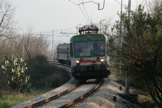 ALE 126-510 auf der Metro Campania Nord Est auf der fahrt von Napoli Centrale nach Benevento in der Kehre von Santa Maria a Vico, 24.02.2008 André Breutel