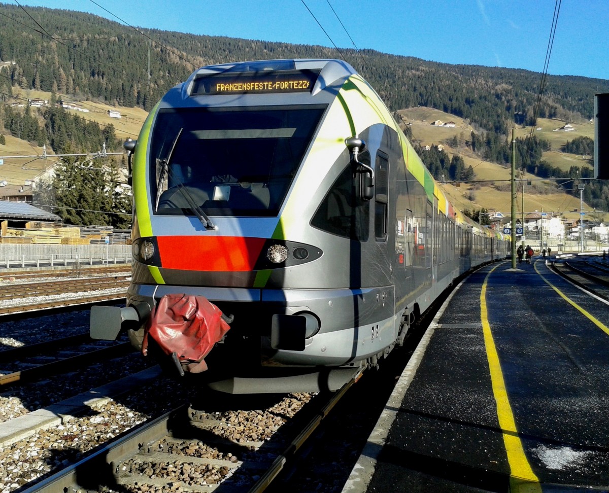 Nachschuss vom ETR 170 XXX als REX 1862 (Lienz - Fortezza/Franzensfeste), kurz vor der Einfahrt in den Bahnhof San Candido/Innichen.