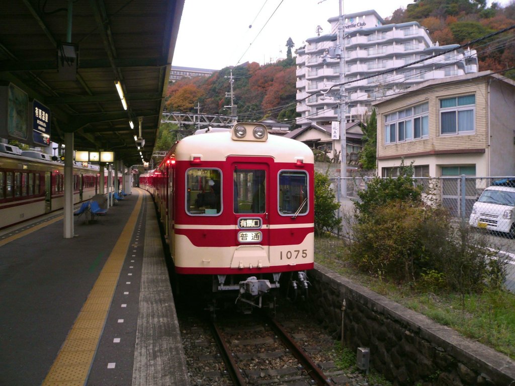 Grunddaten zur Kôbe-Bahn (Kôbe Dentetsu, "Elektrische Bahn von Kôbe"): Diese heute mit den Hankyû- und Hanshin-Konzernen verflochtene Bahn (1067mm-Spur) betreibt insgesamt 70 km Strecken im Hinterland der Stadt Kôbe. Da die Hafenstadt Kôbe an der Inlandsee am Fusse eines Gebirges liegt, muss die Kôbe-Bahn extreme Steigungen überwinden, um in die Siedlungsgebiete in den Bergtälern zu gelangen. Der Fortbestand einiger Strecken ist nicht gesichert. Im Bild ein alter Zug der Serie 1100 mit Endwagen 1075 in Arima Onsen, einer Bergsiedlung mit heissen Quellen, 7.Dezember 2010. Heute sind von der Serie 1100 (1969-1972 gebaut) noch 11 Vierwagen- und 8 Dreiwagenzüge vorhanden.