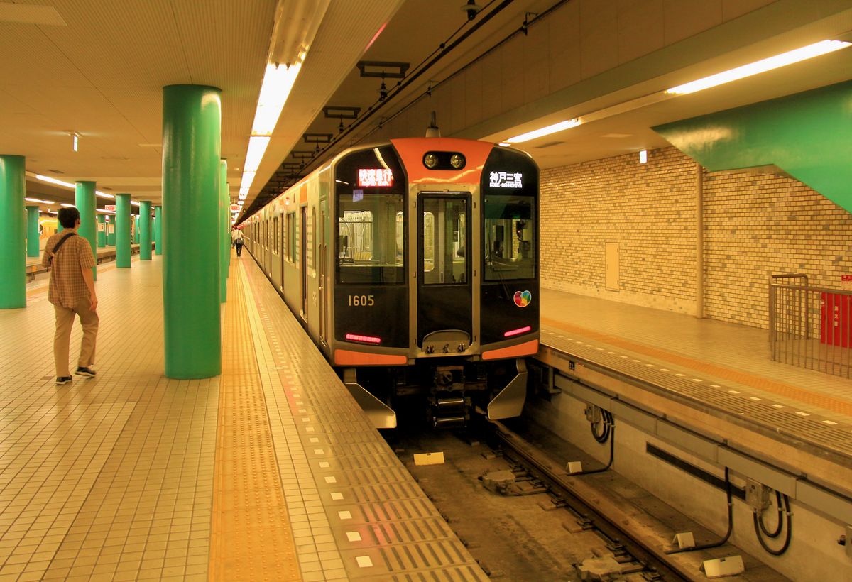 Der Hanshin-Konzern betreibt als Hauptachse eine 32,1 km lange Strecke zwischen Ôsaka und Kôbe, und zwar recht nahe an der Bucht von Ôsaka entlang; durch die Küstennähe bedient sie Siedlungsgebiete im Hafenraum, welche teilweise viel ärmlicher wirken als die Siedlungsgebiete weiter im Inland und am Fuss des hohen Rokkô-Bergmassivs entlang. Letztere werden von JR (Regional- und Shinkansen-Linie) und vom Hankyû-Konzern bedient. In Kôbe fahren die Hanshin-Züge auf die unterirdische Kôbe Rapid Transit Railway (5,7 km) ein, die keine eigenen Fahrzeuge hat. Hanshin-Expresszüge fahren von da vielfach weiter über den Sanyô-Konzern bis in die Stadt Himeji (54,7km). Die Schriftzeichen für "Han" und "Shin" symbolisieren "Ôsaka – Kôbe". Im Bild sieht man die oft erdrückende Landschaft voller Hochstrassen mit donnernden Lastautos und Verkehrskollaps. Der Hanshin-Expresszug 8233 fährt aus der Station Noda in Ôsaka aus, 7.Oktober 2016. Peter Ackermann