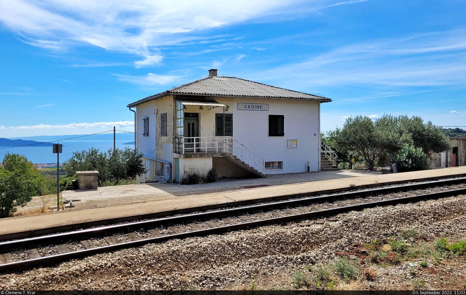 Von Kaštel Stari (HR) folgte ein gut 1,5-stündiger Aufstieg durch die steinige Gegend bis zum nächsten Foto-Punkt bei Kaštel Štafilić (HR). Dabei lag auch der Haltepunkt Sadine (HR) mit seinem kleinen Stationsgebäude auf dem Weg.
