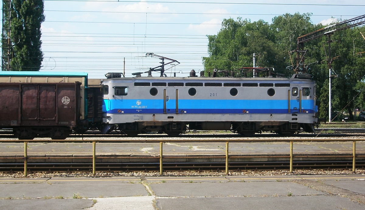 Mit einem Güterzug in Richtung Serbien verlässt HZ 1 141 201-2 am 21.05.2009 den kroatischen Grenzbahnhof Vinkovci