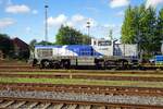 NEXRAIL Lease mit ihrer Vossloh G 6 (NVR: "98 80 0650 149-4 D-NXRL") fährt zu einer Abstellgruppe neben dem Bahnhof Ruhland, einem Kessel-und Silowagenzug zur Übergabe zum BASF Schwarzheide Werkgelände, 15.06.23 Lothar Stöckmann