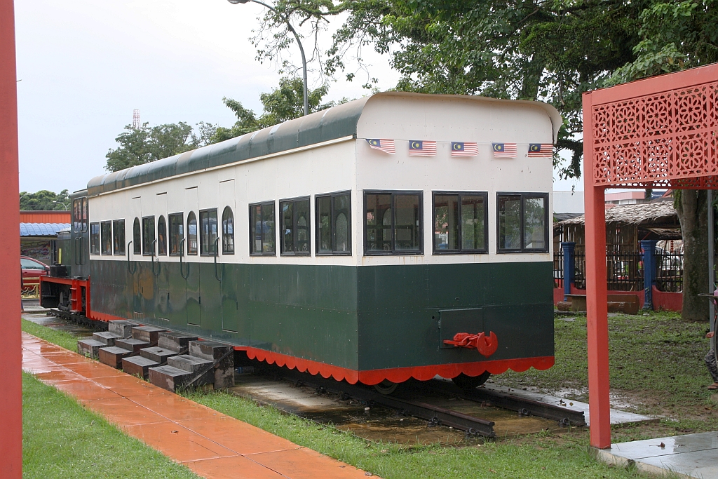 Gleich schräg gegenüber der JKNS Stesen Papar liegt der Papar Public Park wo dieser nummernlose Personenwagen aus NBR-Zeiten aufgestellt ist. - Bild vom 09.Februar 2025.