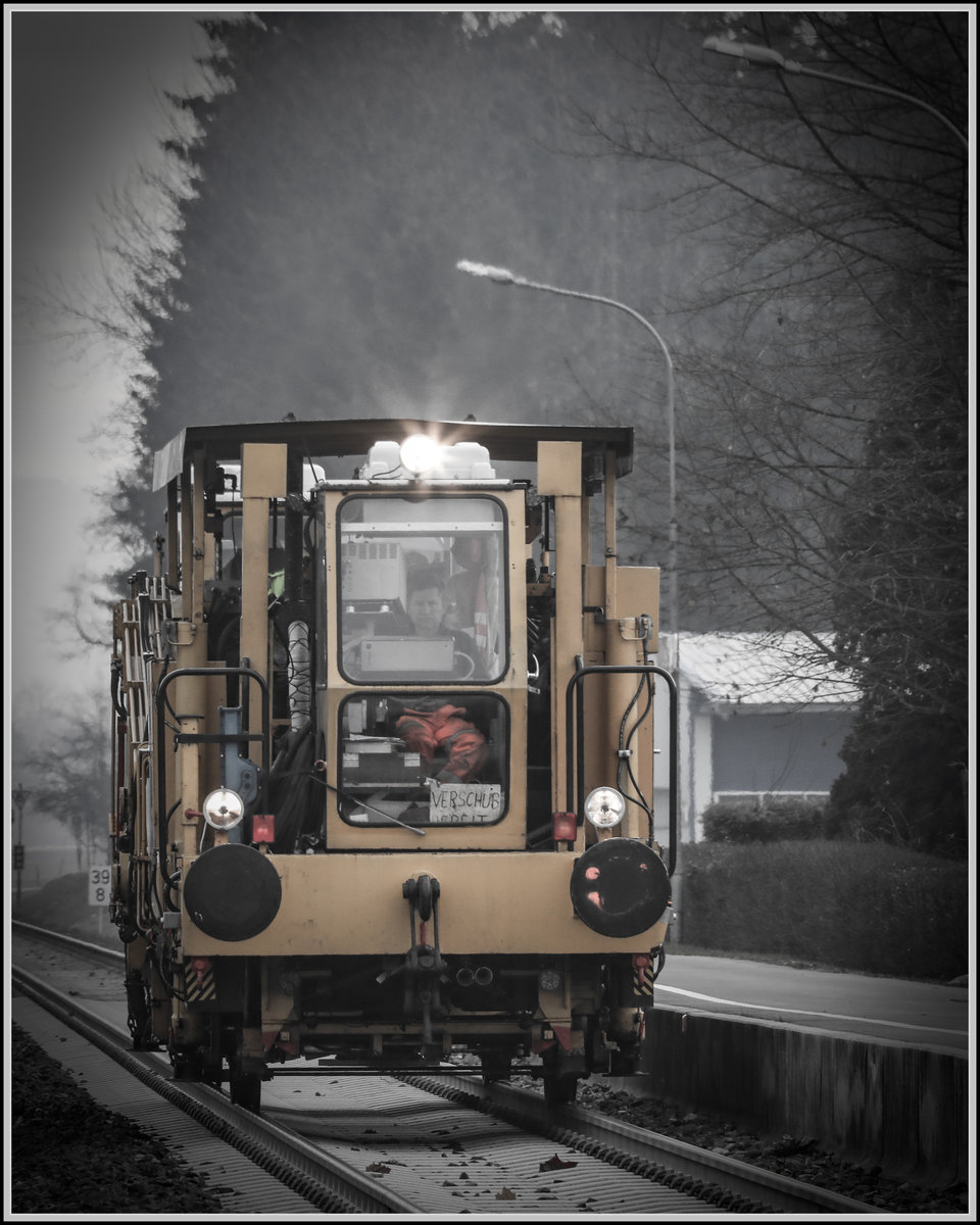 Eine der letzten Arbeiten ist immer das Stopfen . Auch hier wühlt sich die "kleine" durch den Schotter um die Schienen in korrekte Position zu bringen.