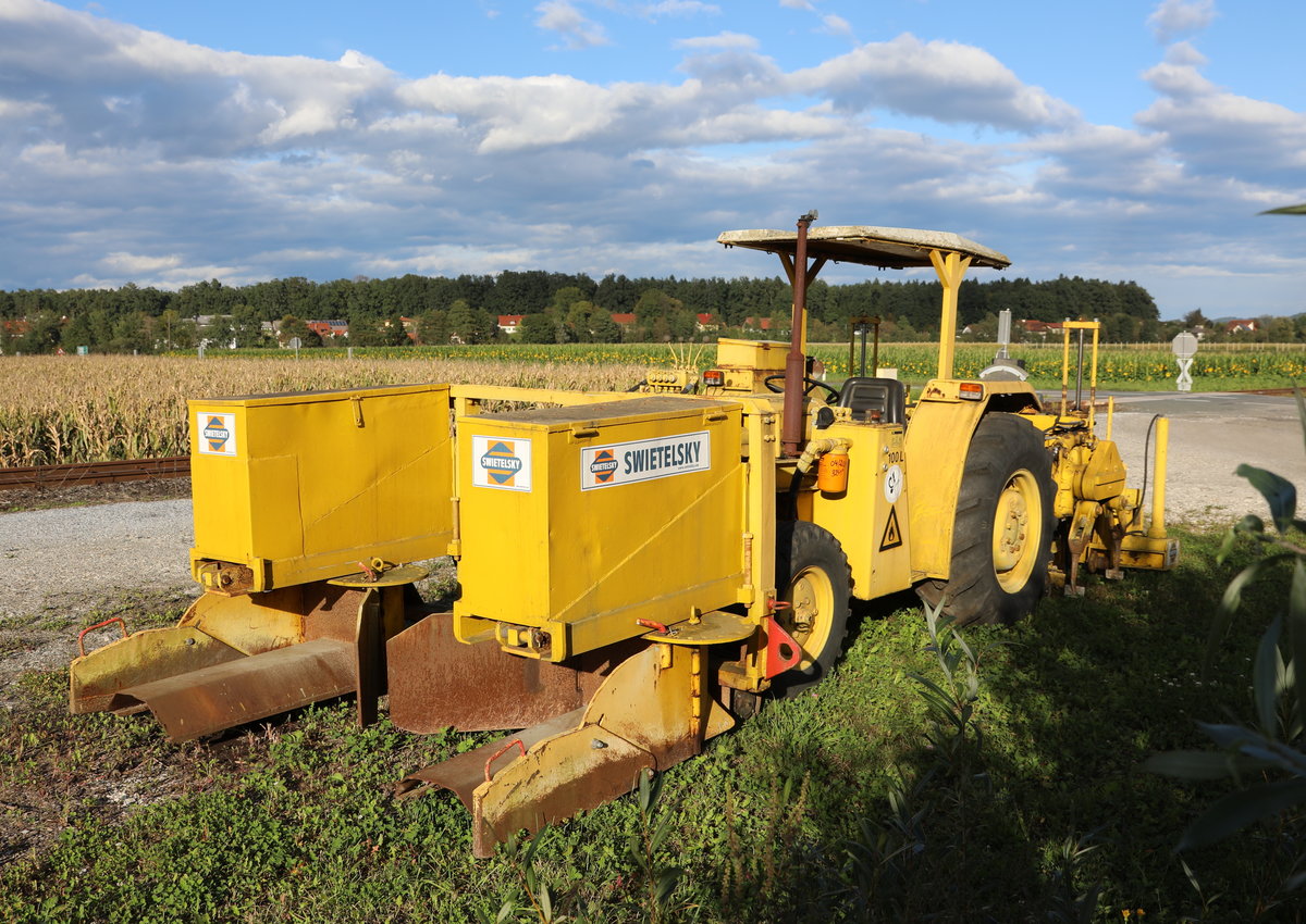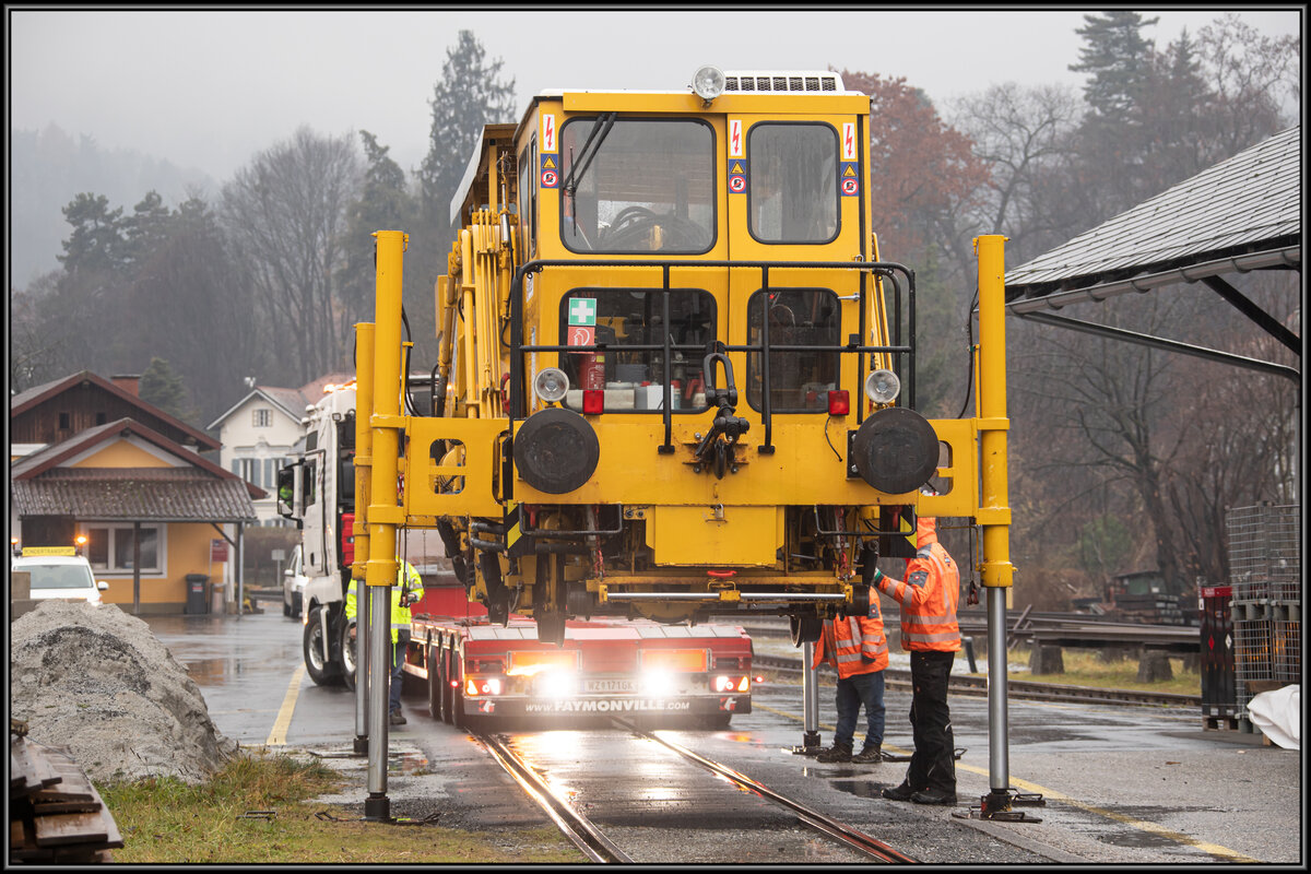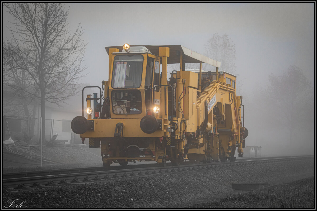 Die kleine Stopfmaschine im "Bahnhof" Pölfing Brunn der am 21.10.2021 quasi über nacht von der Halte und Ladestelle zur Haltestelle wurde.