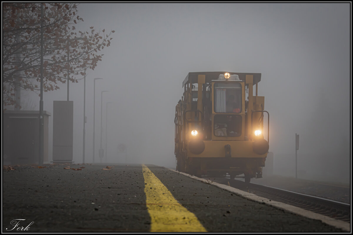 Nebel begleitete eine Baustelle der GKB in Pölfing Brunn am 21.11.2021.