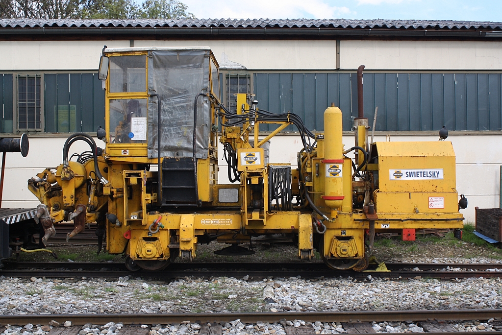 Unimat 09-32/4S Dynamic Stopfmaschine von Bahnbau Wels GmbH (bbw) ist am Bahnhof Hochfilzen "verschubbereit abgestellt". Aufgenommen 23.5.2018. stbtram