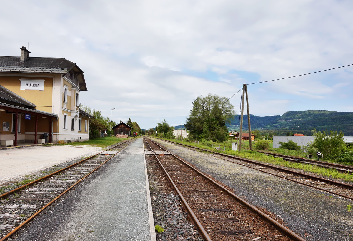 Blick auf den Bahnhof Feistritz im Rosental, am 5.5.2016.