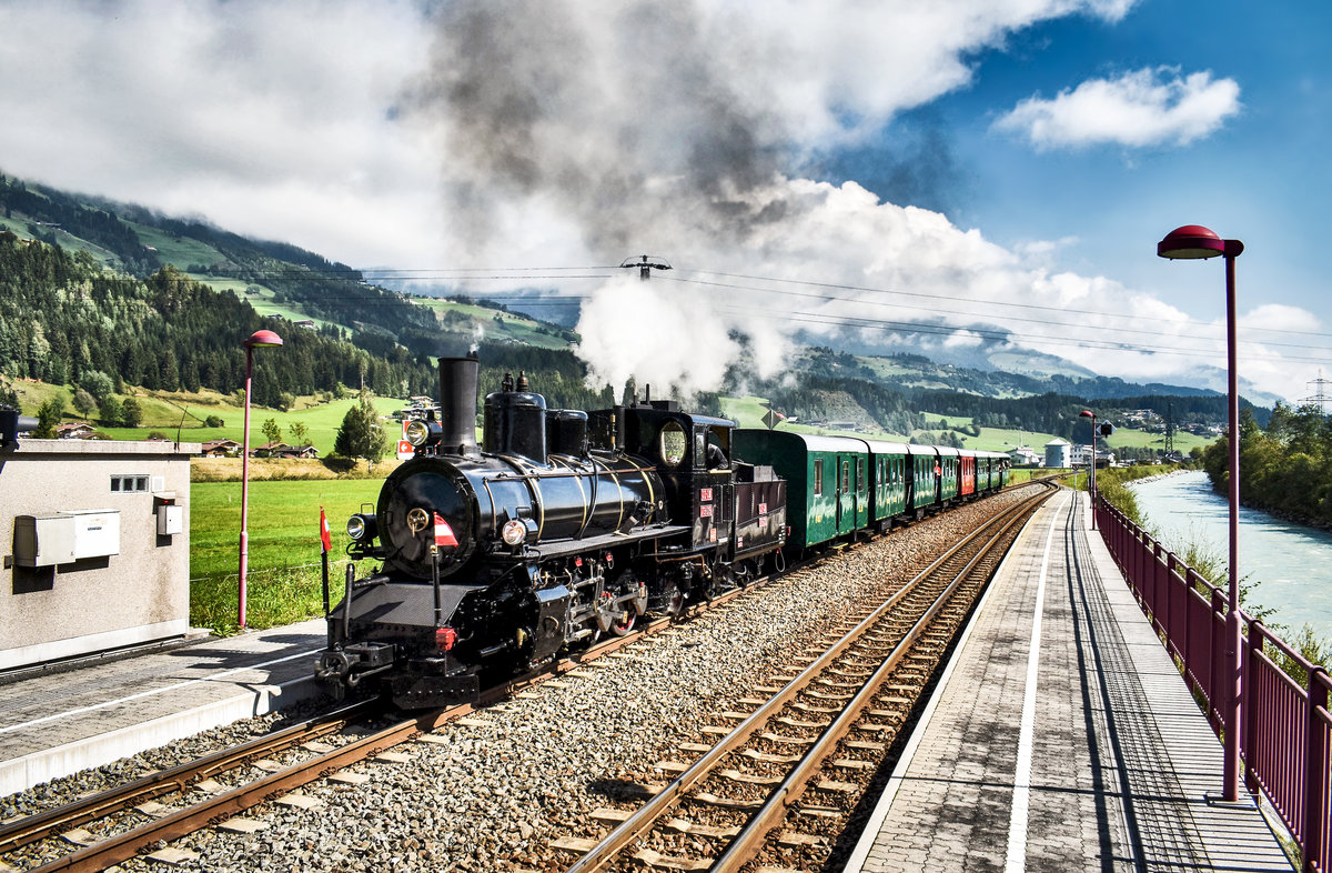 Um dem nachfolgenden Regelzug den Bahnsteig freizumachen, fuhr 73.019 mit dem Sdz 900 (Zell am See - Krimml), noch bis wenige Meter vor den Endpunkt der Pinzgaubahn vor.