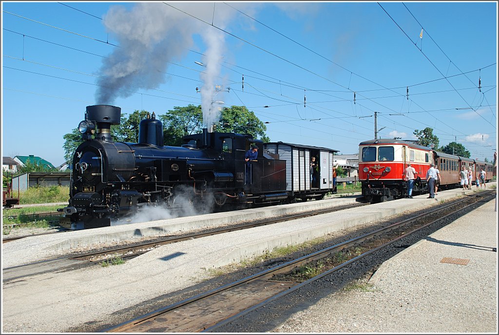 Dampf-Panoramic 1.August 2010 - Die 1099.002 bringt den Sonderzug nach Ober Grafendorf, wo sich die Mh.6 schon bereit gemacht hat, den Zug zu übernehmen und ihn nach Mariazell zu bringen. Tobias Moser