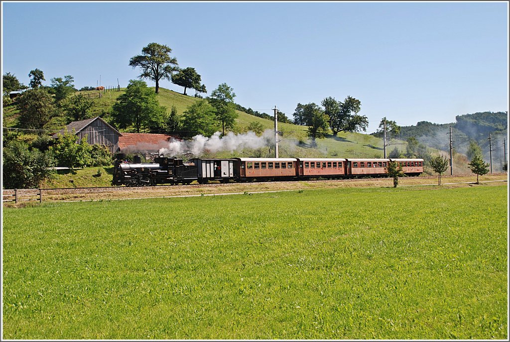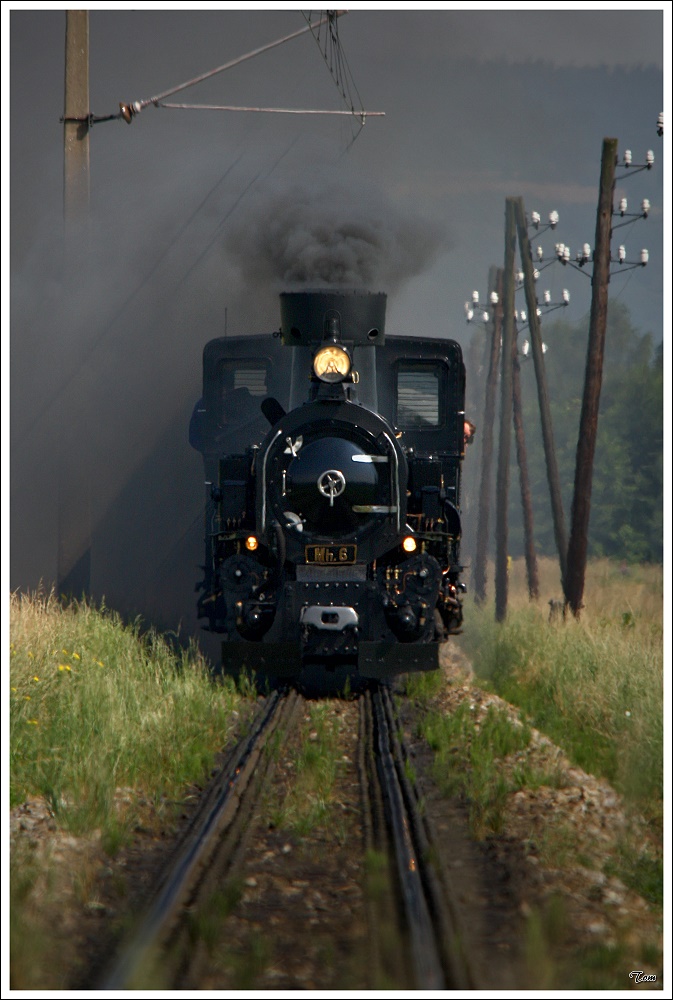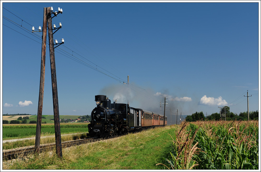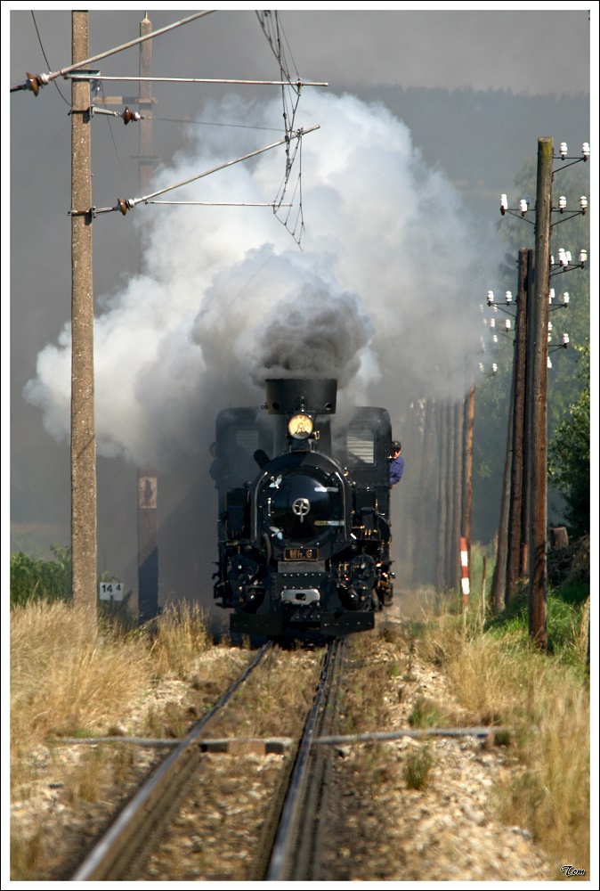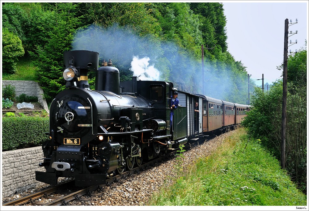 Dieses Bild zeigt die Mh.6 bei der Rückfahrt des Dampfpanoramic am 1.August 2010 bei der Einfahrt Laubenbachmühle. Das Bild entstand von Winterbach aus, von wo man ein tollen Blick auf Laubenbachmühle hat, wo die 1099 008 mit ihren 6 Wagen darauf wartet, am Montag (2.August) als R 6824 nach St.Pölten fahren zu dürfen. Tobias Moser