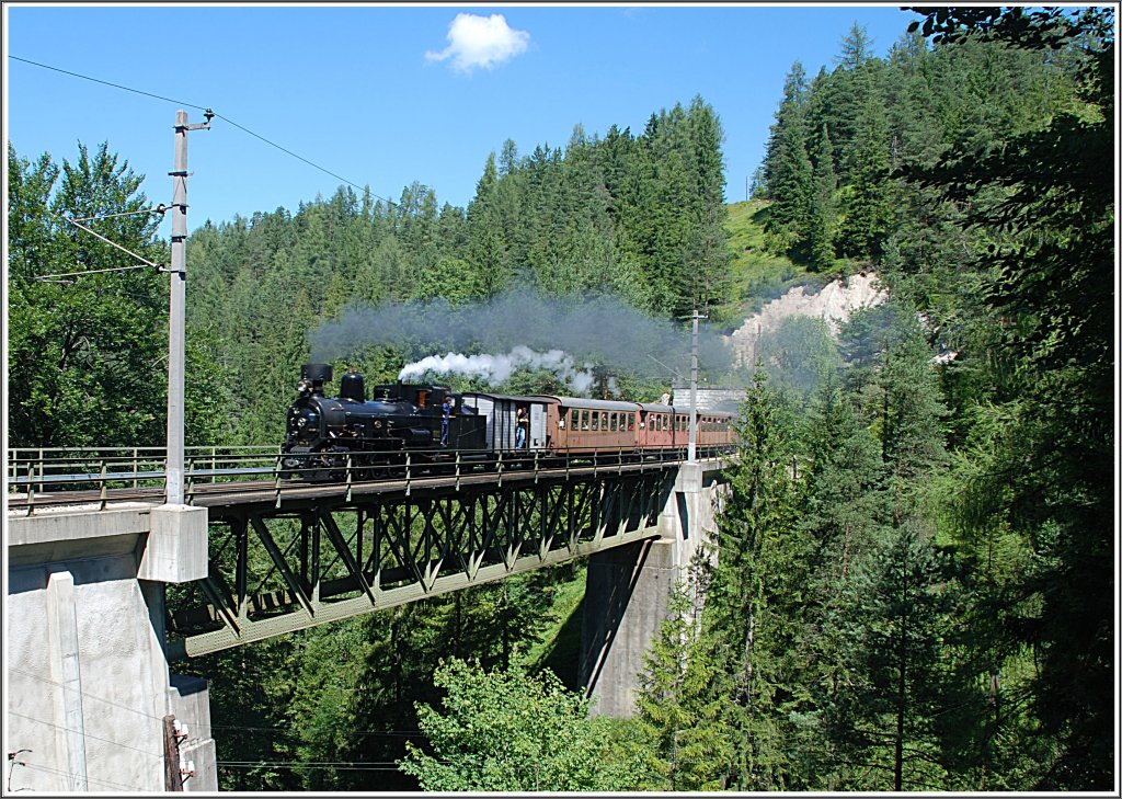MH.6 auf dem Kuhgrabenviadukt mit dem Panoramic 760 Austria Tourist Train am 1.August 2010. Besonders schön ist, dass der Ötscher im Hintergrund eine grandiose Kulisse bildet.