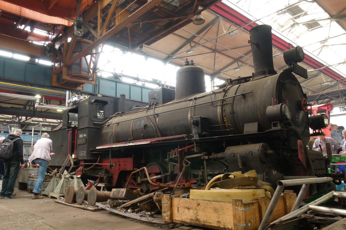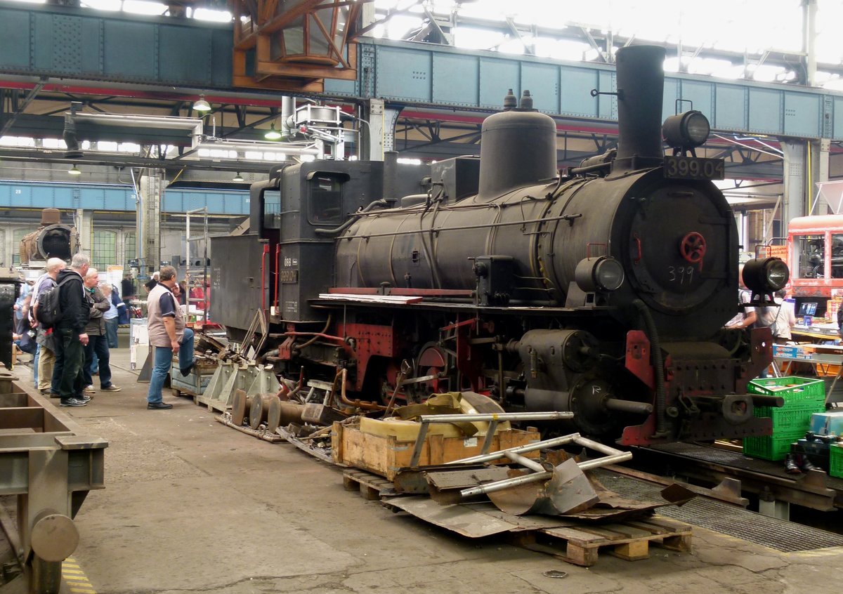 06. September 2014. Dampfloktage in Meiningen, Das sieht richtig nach Arbeit aus: Die Stütztender-Lokomotive 399.04 der NÖVOG Sankt Pölten wird einer Hauptuntersuchung unterzogen. Jürgen Krause