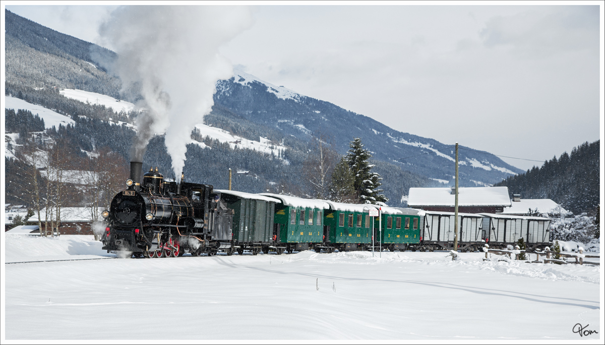 Winterwonderland III - Auf der Pinzgaubahn fährt die Dampflok MH3, mit einem Dampfsonderzug von Zell am See nach Krimml. Krimml 1.2.2015 Leitner Thomas