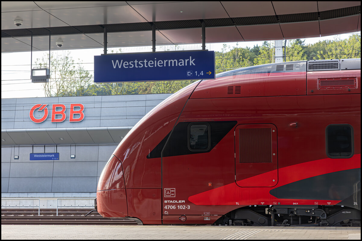 Aktuell finden Testfahrten mit der neuen Baureihe 4706 auf der Koralmbahn statt. Hier zusehen 4706 103 und 4706 102 zwischen dem Bahnhof Weststeiermark und dem 32,8 Kilometer langen Koralmtunnel.