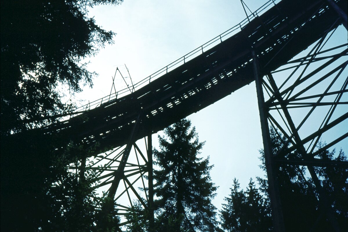 Stubaitalbahn__Kreither Viadukt (Länge 110 Meter Höhe 25 Meter) über den Klausbachgraben.__18-08-1973