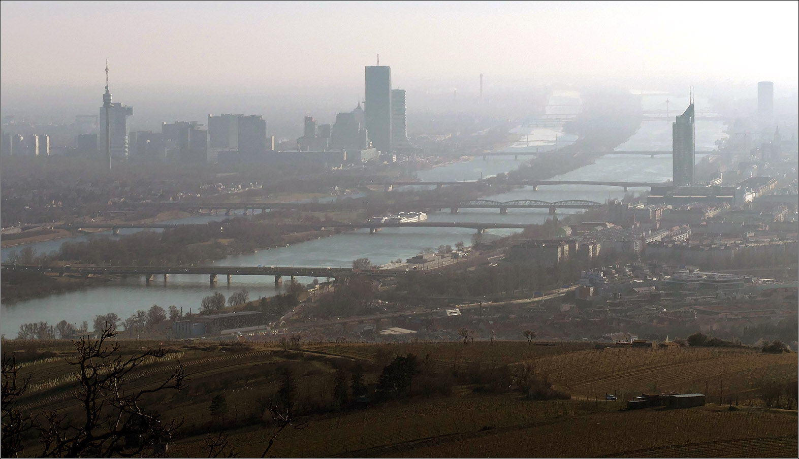 Von Kahlenberg hatten wir einen schönen Blick über Wien und die Donau und parallele Neue Donau. Gerade das Gegenlicht und die etwas diesige Sicht hatte ihre eigene Reize.