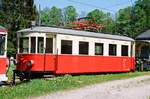 ET 26.101 auf dem Remisengelände der Lendcanaltramway Klagenfurt, völlig ungeschützt dem Wetter überlassen. Der Wagen war zuvor bei der Attergaubahn (österreichische Lokalbahn mit 1000 mm Spurweite) eingesetzt gewesen.