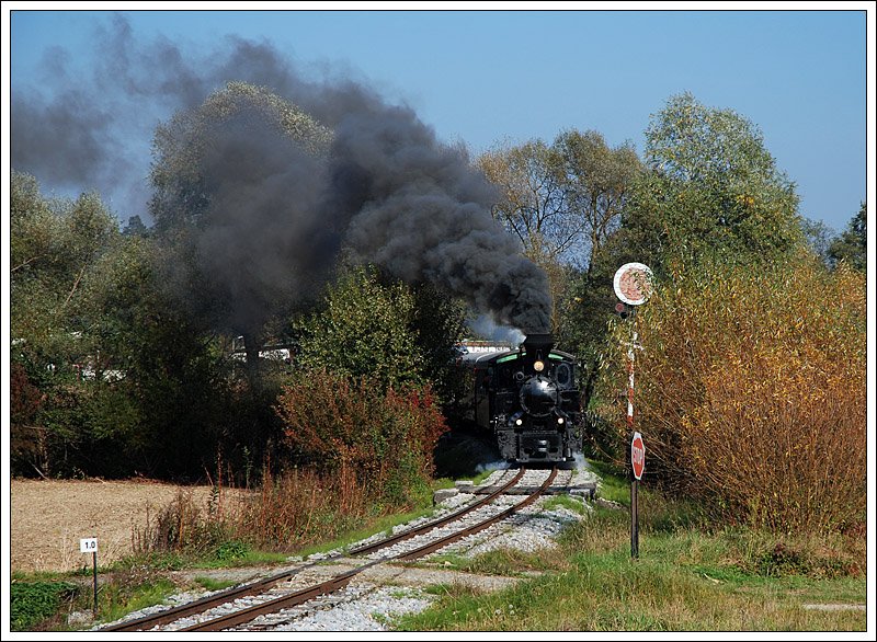Der "Stainzer Flascherlzug" am 11.10.2008 auf dem Weg nach Preding am 11.10.2008 kurz nach Stainz im Bereich Stallhof aufgenommen.