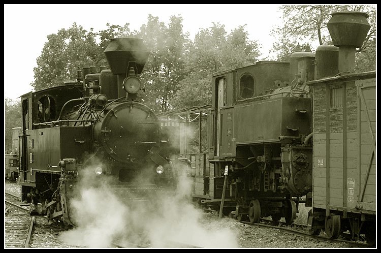 Aktuell steht beim "Stainzer Flascherlzug" bei Dampffahrten die ehemalige rumänische Waldbahnlokomotive 764.411 Model Resita Nr. 619 BJ 1986 im Einsatz. Die S 11, die lange Jahre Dienst auf der Strecke zwischen Stainz und Preding-Wieselsdorf versah, steht zur Zeit nicht betriebsbereit im Lokschuppen in Stainz. Die Aufnahme entstand in Stainz am 11.10.2008.