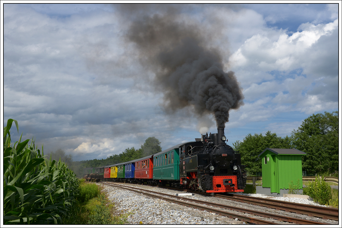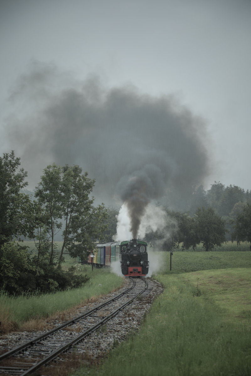 Am 11.Juli 2018 dampft 764.411 R durch die Betriebsstelle Herbersdorf gen Stainz