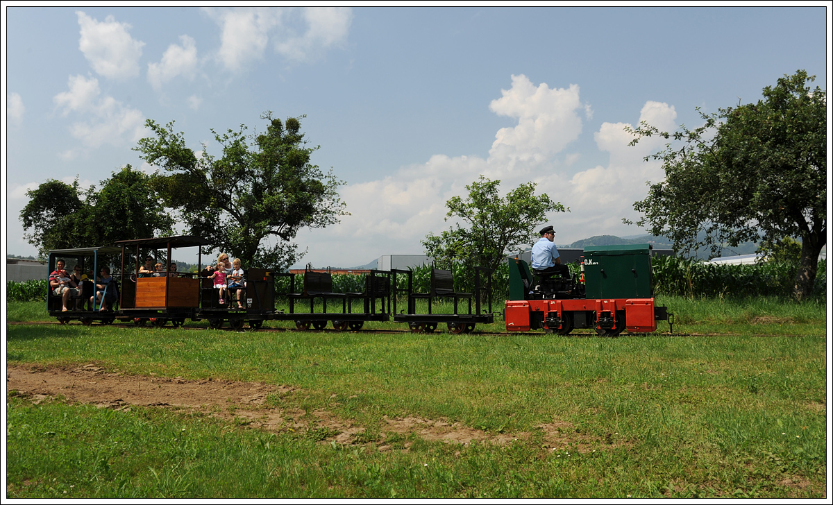 Tag der offenen Bahnhofstür bei der Stainzer Lokalbahn am 25.6.2016. Hier dreht Karl-Heinz gerade ein Runde mit einer JW15 und einem Waggon. Hanspeter Reschinger