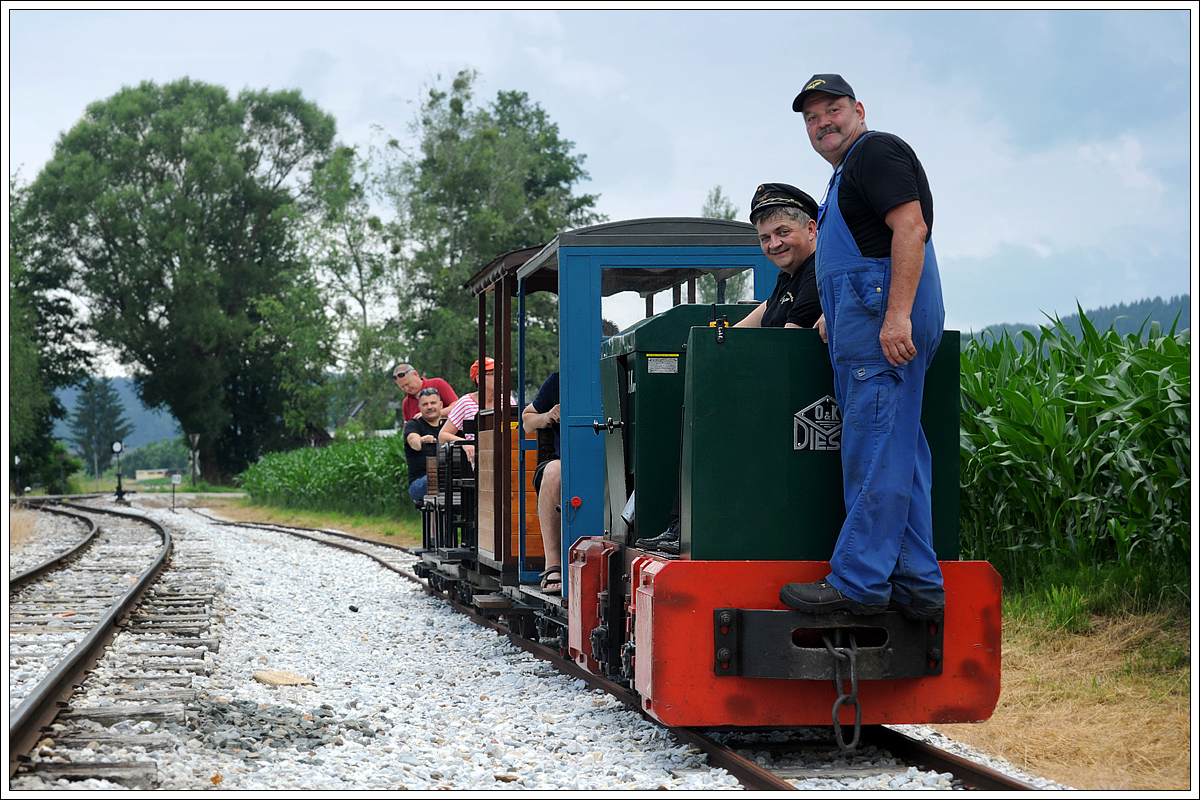 Tag der offenen Bahnhofstür bei der Stainzer Lokalbahn am 25.6.2016. Heinz und Herbert bei einer der zahlreichen Besucherfahrten an diesem wunderschönen Tag. Hanspeter Reschinger