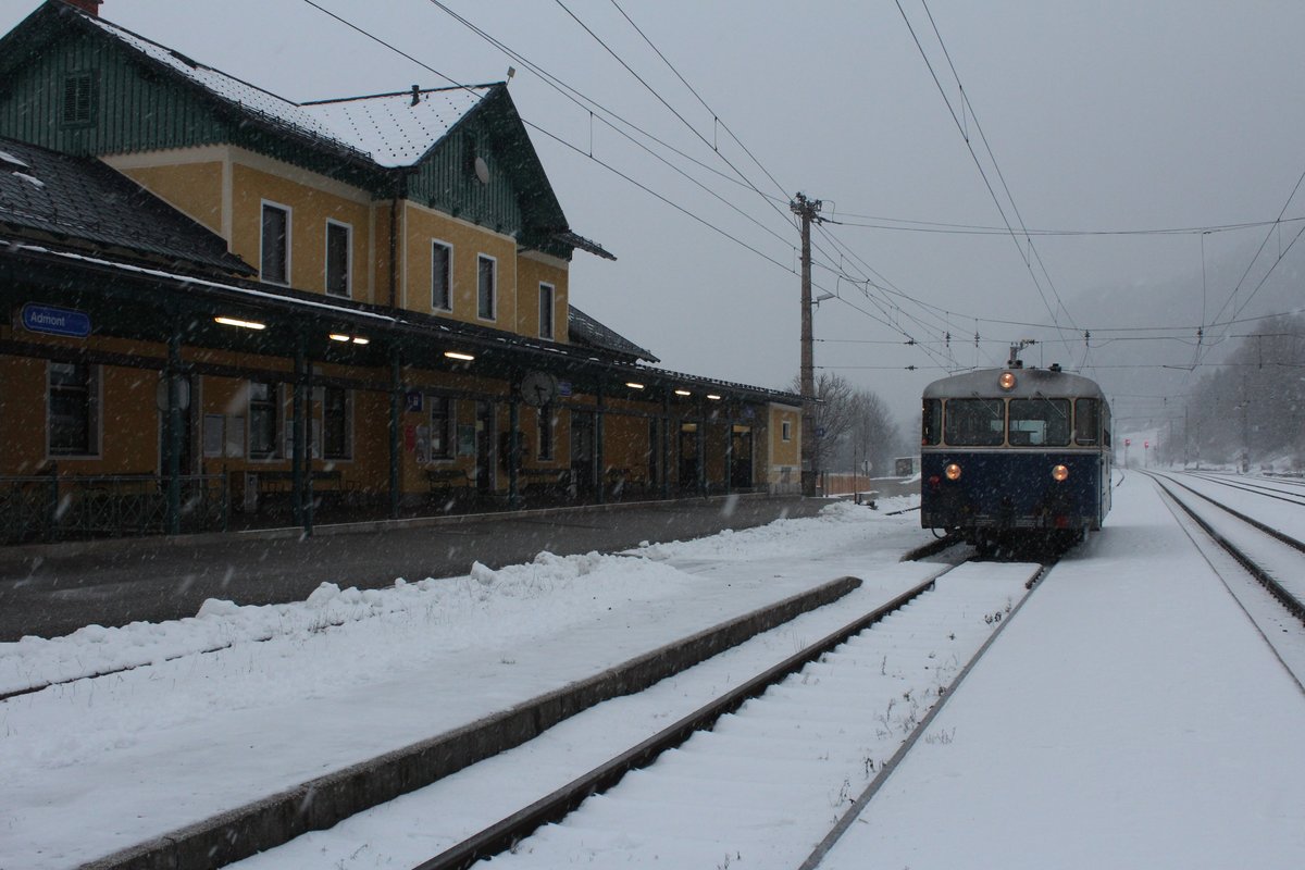 Kurz vor der Abfahrt steht der 5081.55 im Bahnhof Admont und wartet auf die letzten Fahrgäste. Der dichte Schneefall am 15.12.2019 machte eine tolle Stimmung. Max Kiegerl