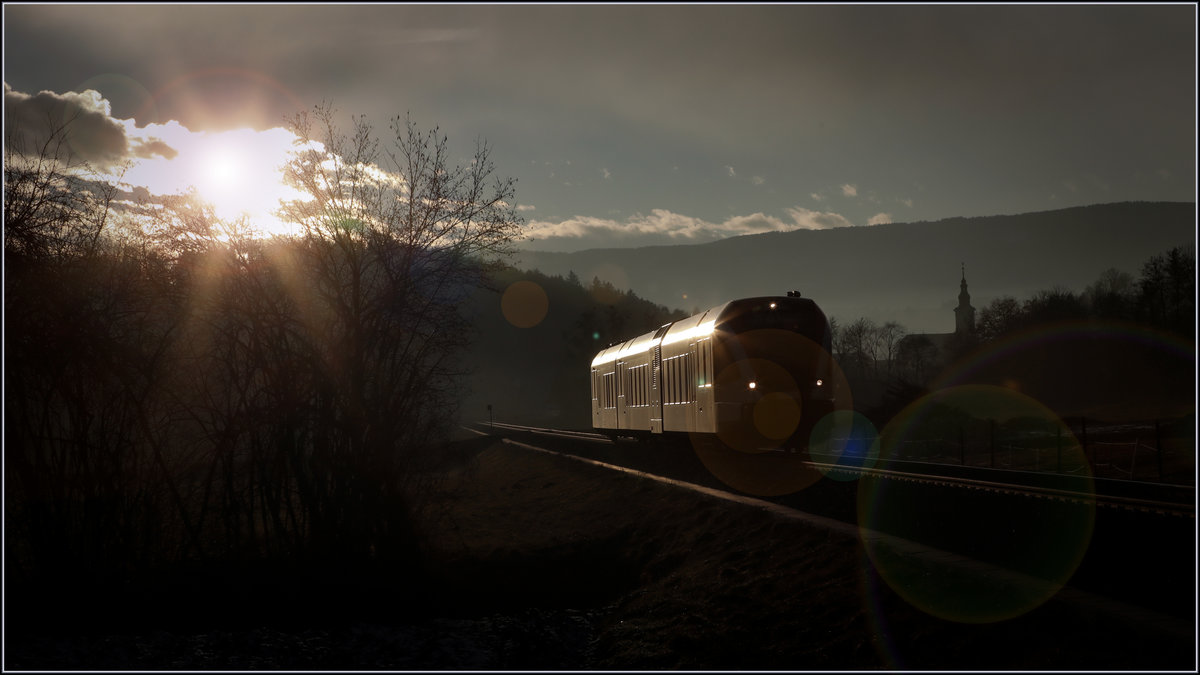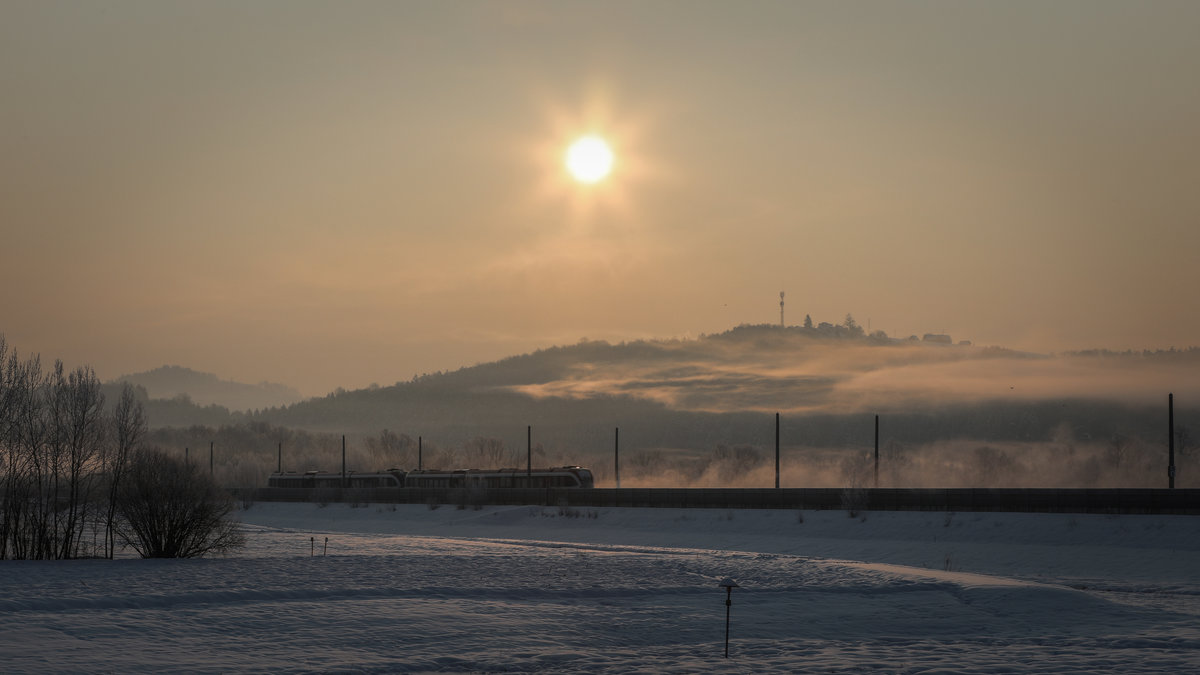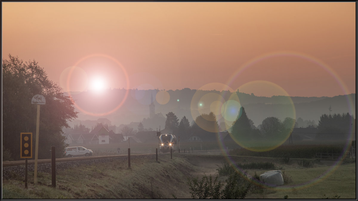 Auf der Südbahn bei Wildon durfte ich im letzten Frühling einen wunderbaren Sonnenaufgang miterleben