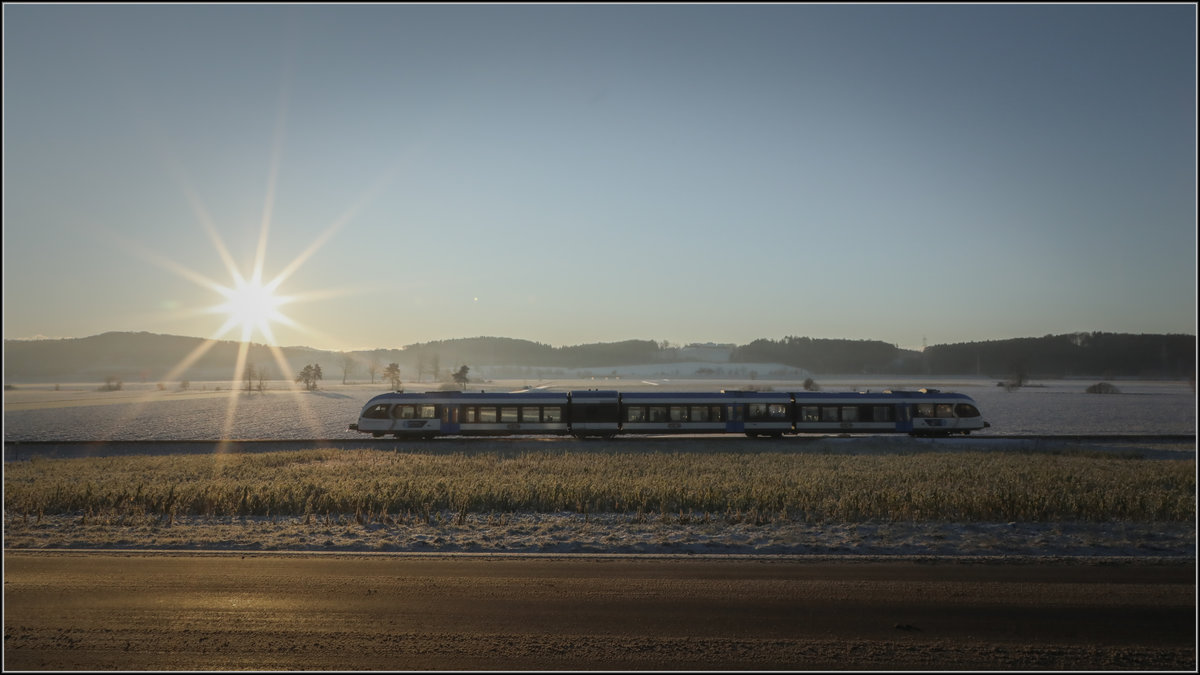 TÜRL Nr.1 Jänner 2019 . Bei Gussendorf steigt die Sonne empor. Ein zarter Hauch von Schnee liegt über dem Land.