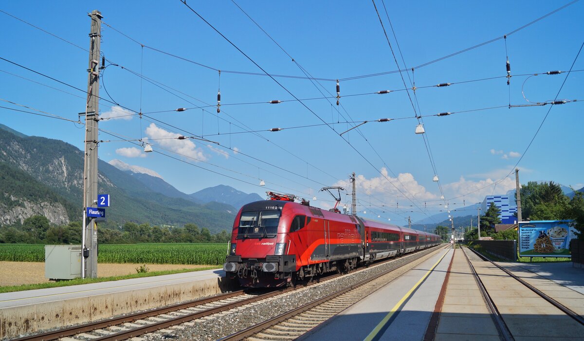 Der neueste Werbestier aus der ÖBB-Flotte ist die 1116 233, die auf das  Lebensgefühl Österreich  aufmerksam macht, welches in Zusammenhang mit dem Skisport stehen soll. Gleichzeitig wird auf diese Weise die Alpine Ski-Weltmeisterschaft 2025 in Saalbach beworben. Am 28.12.2024 herrschte winterliches Kaiserwetter, als die erst kürzlich folierte Werbelok mit dem RJX 662 (Flughafen Wien - Bregenz) bei Flaurling aufgenommen wurde.
