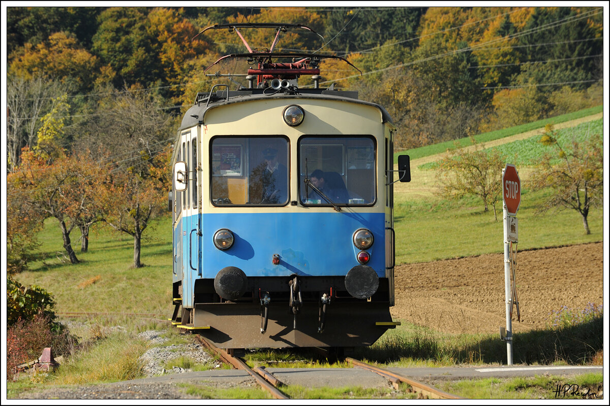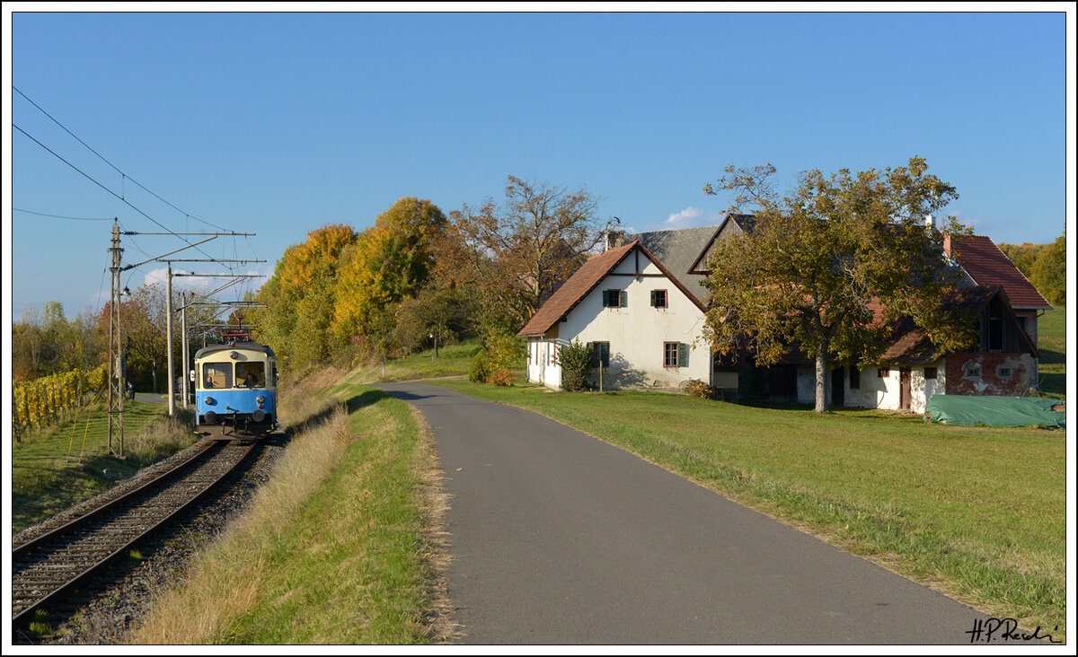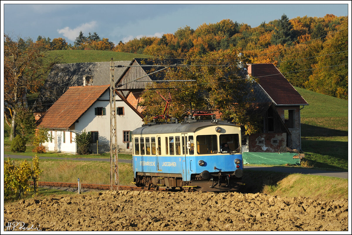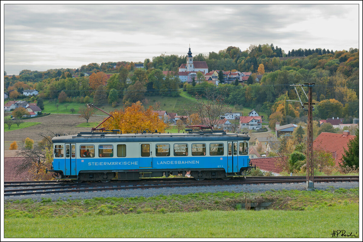 ET 1 der StB am 23.10.2021 auf der Fahrt von Bad Gleichenberg nach Feldbach wenige Meter nach der Haltestelle Trautmannsdorf aufgenommen. Hanspeter Reschinger