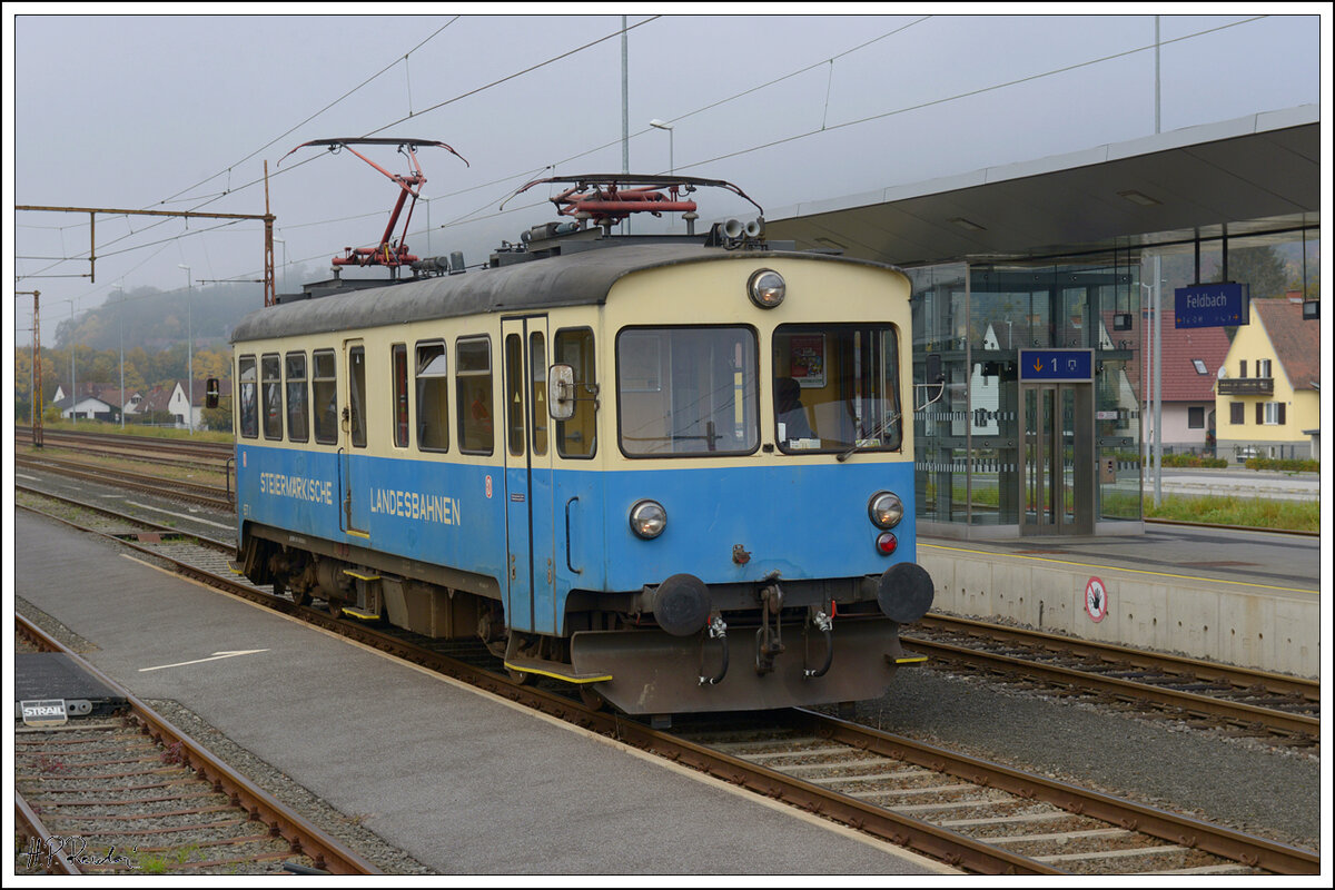 Wegen der Vorfahrt des Planzuges (ET 2) von Feldbach nach Bad Gleichenberg, musste am 23.10.2021 ET 1 in Gans "auf die Seite" gestellt werden. Hanspeter Reschinger