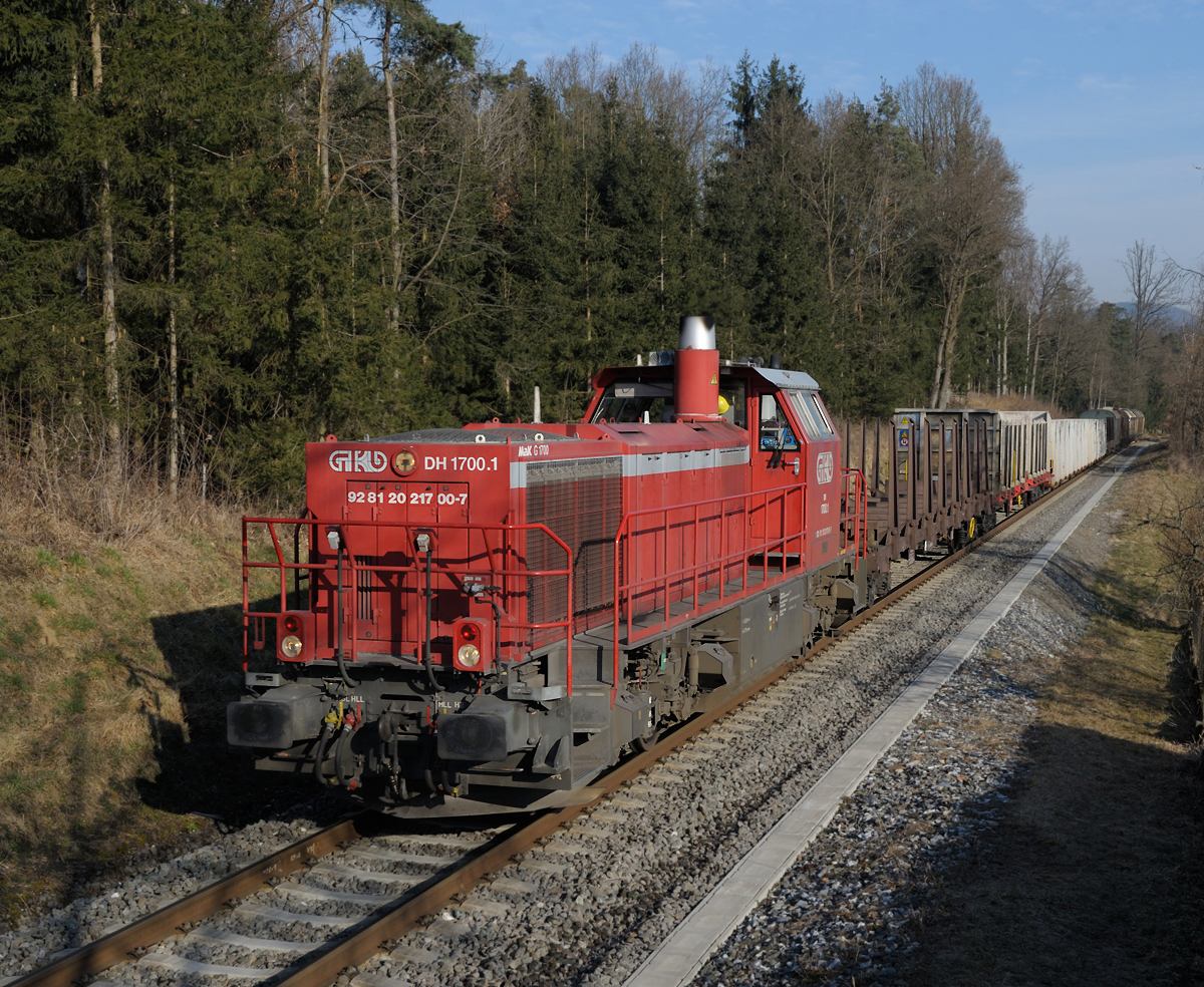 Die GKB 1700.1 war am Morgen des 09. März mit dem montäglichen Güterzug von Graz Köflacherbahnhof nach Wies-Eibisbwald unterwegs, fotografiert bei Unterpremstätten.