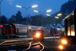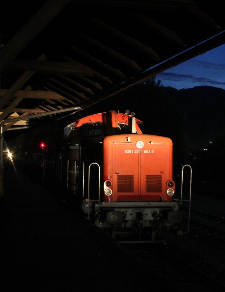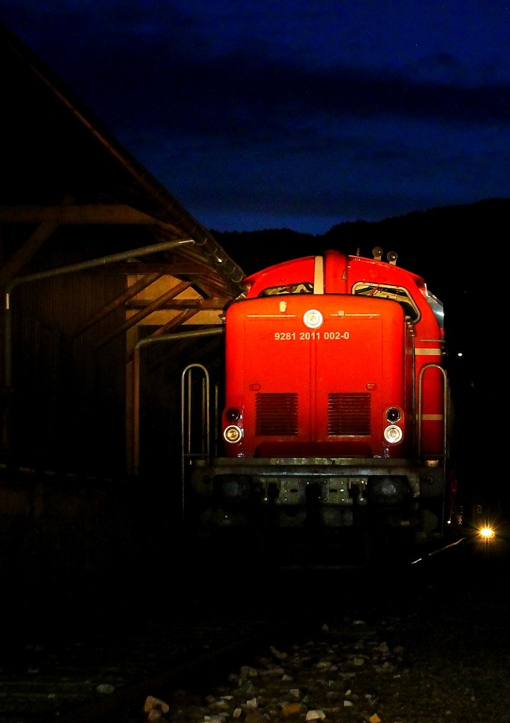 Einsam und verlassen wartet DH 1100.2 in Deutschlandsberg im Schein eines Verschubsignals auf Ihre nächsten Einsätze. 3.Oktober 2013