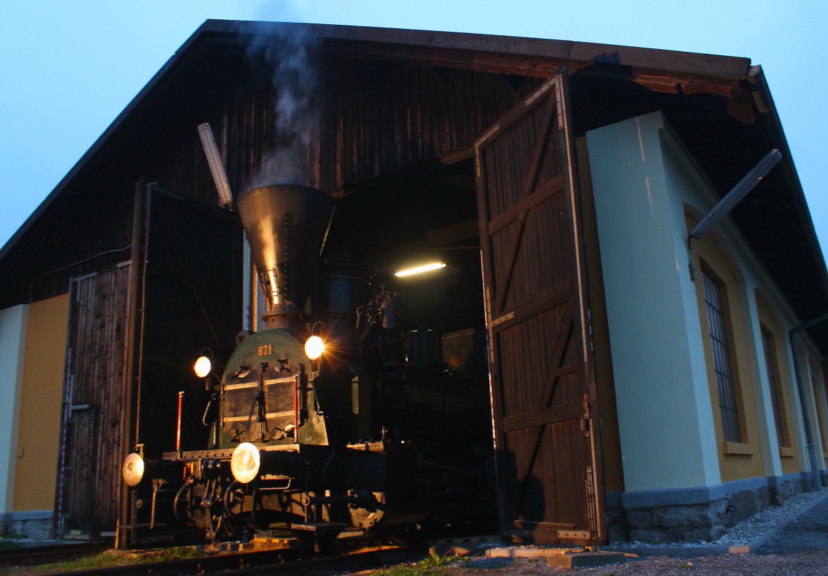WIES amol wor  hieß es am letzten Wochenende in der Gemeinde Wies. Die Gemeindevertreter und Tourismus beauftragten rund um die Gemeinde haben für die Eisenbahn die die Region doch auch mitgeprägt haben immer ein Ohr offen. So hielten die Freunde der Sulmtalbahn in den letzten Jahren immer wieder Austellungen dort ab. Auch diesmal war die Gemeinde Live dabei als es hieß die Wieserbahn zu feiern. Hier am Foto zu sehen ist 29.671 auf der Drehscheibe in Wies Eibiswald am Abend des 28.09.2013.