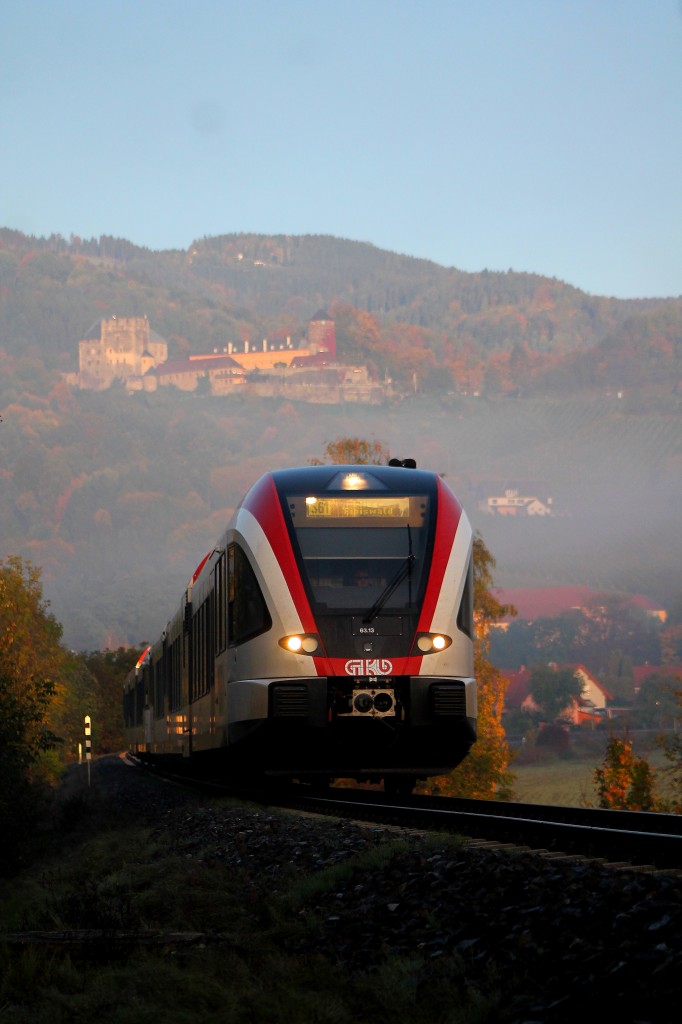 Es Herbstlt ! Und mit dem Herbst kommen die Spinnweben! Ein Triebwagen der Reihe 5063 fährt richtung Graz am Abend des 13.Oktober 2013 nächst St.Martin im Sulmtal Bergla