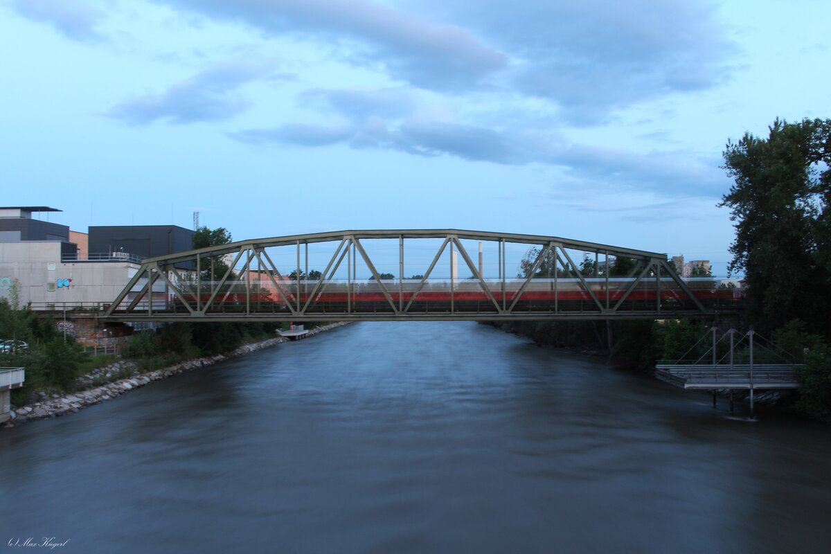 Am Abend des 13.6.2024 überquert der 5022 029 als R4730 von Graz Hbf nach Fehring die ca 70m lange Stahlfachwerkbrücke über die Mur zwischen Graz Don Bosco und Graz Ostbahnhof. Max Kiegerl