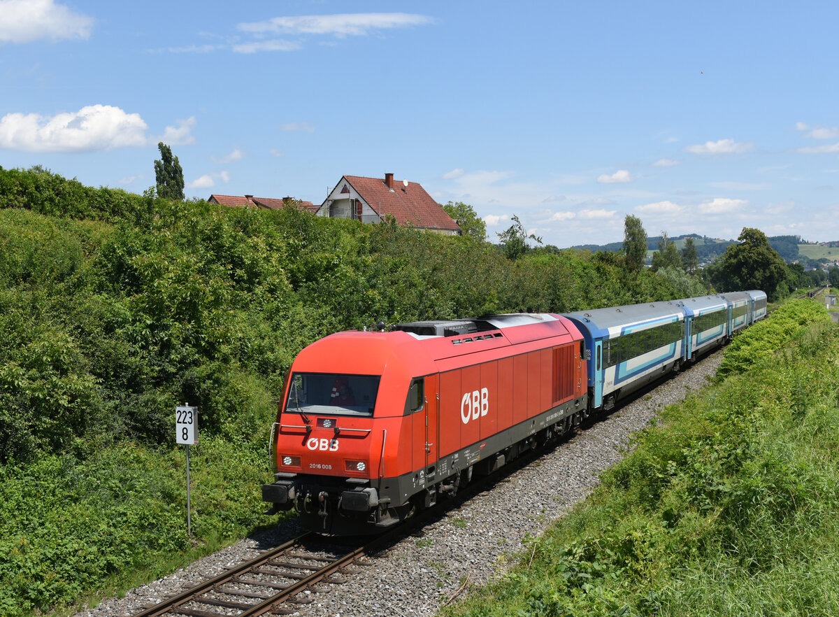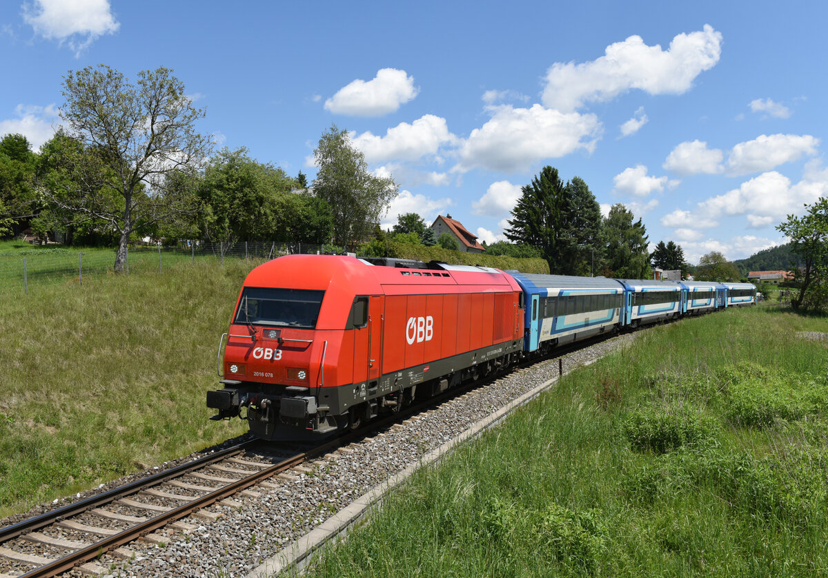 Am 13.6.2024 eilt die 2016 093 mit dem IC310 ihrem Ziel Graz Hbf entgegen, wo ein Triebfahrzeugwechsel stattfindet. Max Kiegerl