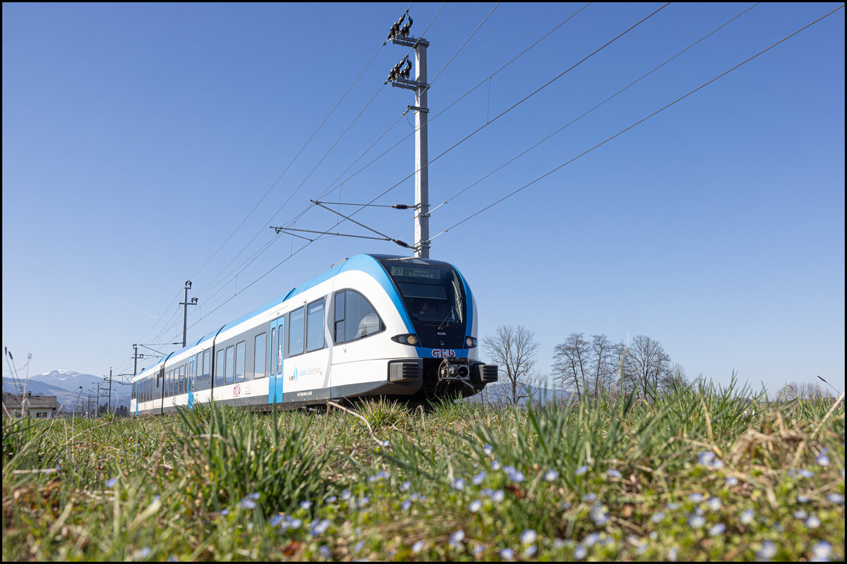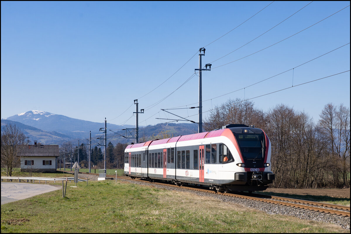 Die ersten Frühlingsboten sind bereits am abblühen an diesem Frühlingstag , 21.3.2025 , GTW 08 hat soeben den Bahnhof St. Martin im Sulmtal Bergla erreicht. Karl Heinz Ferk