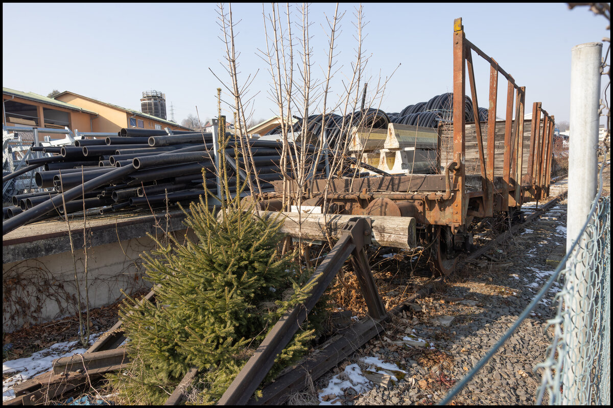 Ein Güterwagen der Gattung "O" verrottet im Bahnhof Voitsberg hinter einem Maschendrahtzaun . Seine guten Zeiten sind vorbei . 22.2.2025 Karl Heinz Ferk