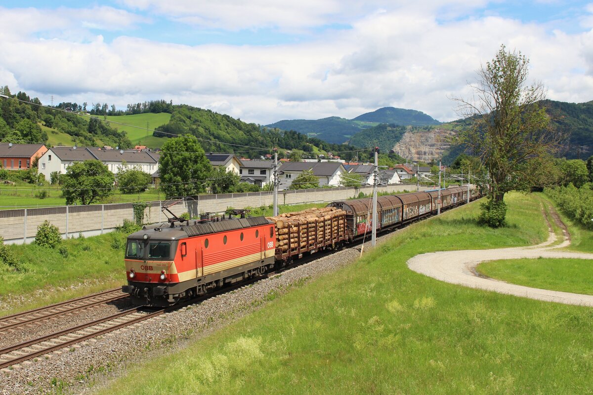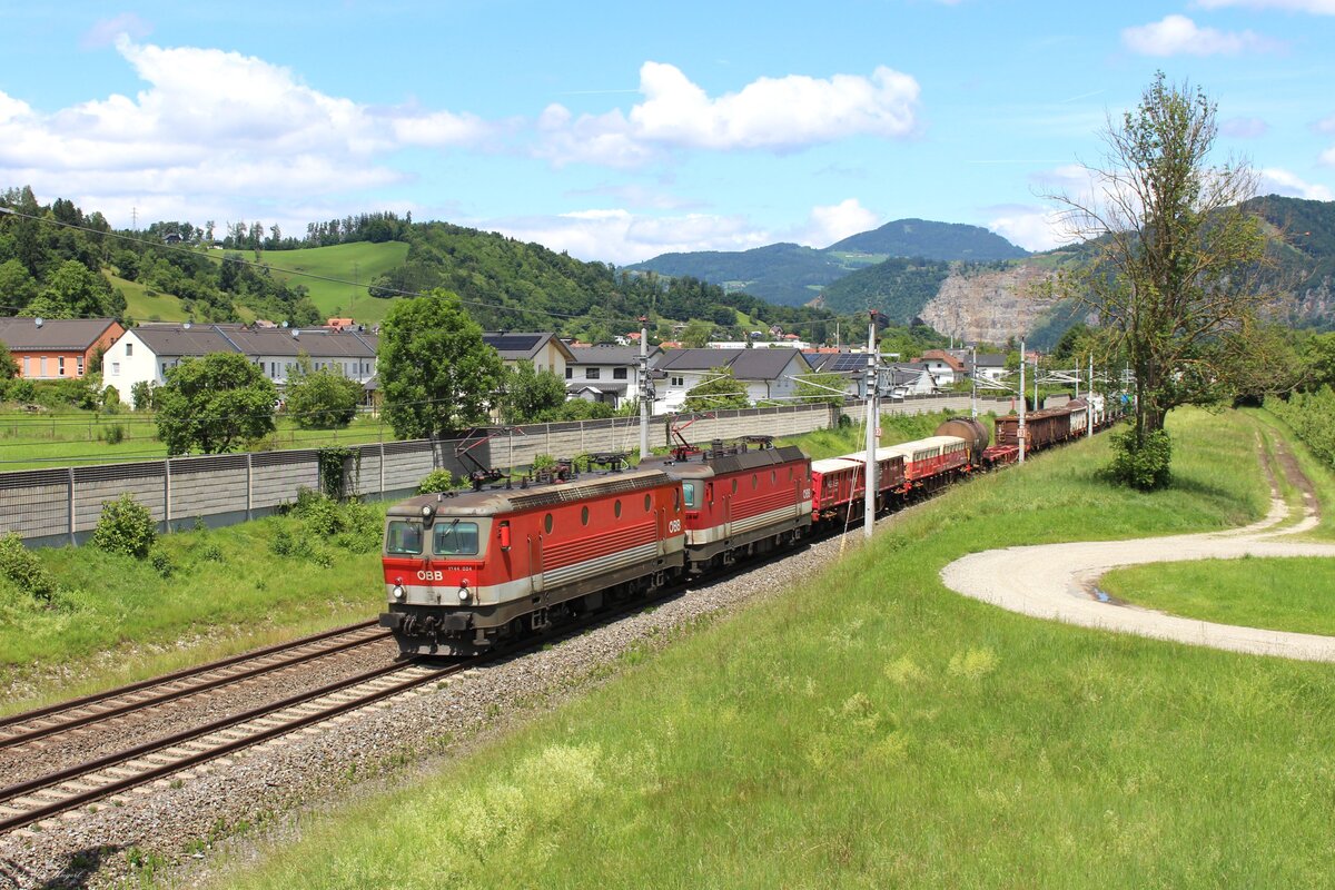 Von Villach Süd Gvbf nach Graz Vbf fahren am 4.6.2024 die 1144 034 und die 1144 234 mit einem gemischten Güterzug hier kurz vor Stübing ihrem Ziel entgegen. Max Kiegerl