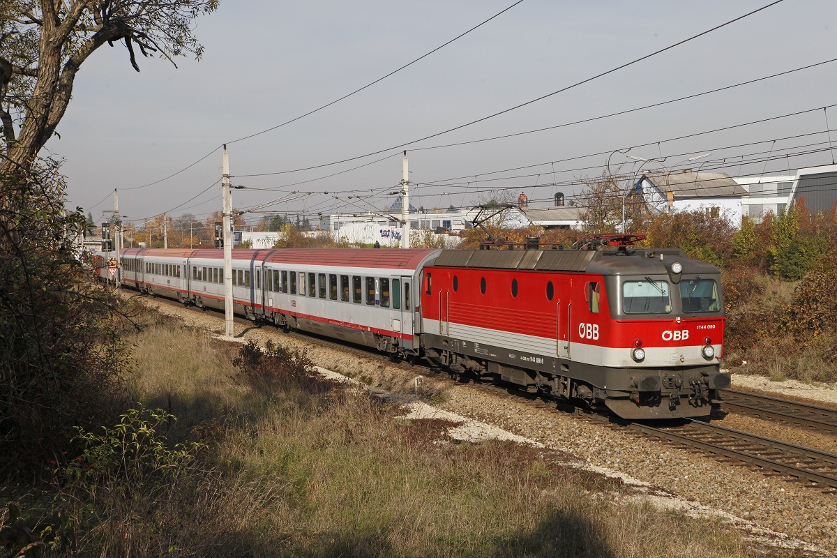 Im dichten Bodennebel fährt die 1144 218 mit einem Doppelstockwendezug bei Pfaffstätten Richtung Süden. Das Bild entstand am 6.11.2015. Herbert Pfoser