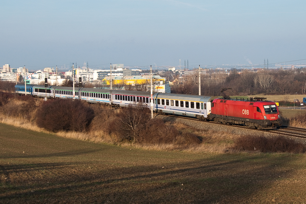 Erster planmäßiger Einsatz der CD Baureihe 380 in Österreich: 380 016 mit EC 73, unterwegs nach Wiener Neustadt, aufgenommen am 15.12.2013 bei Guntramsdorf. Gerhard Zant
