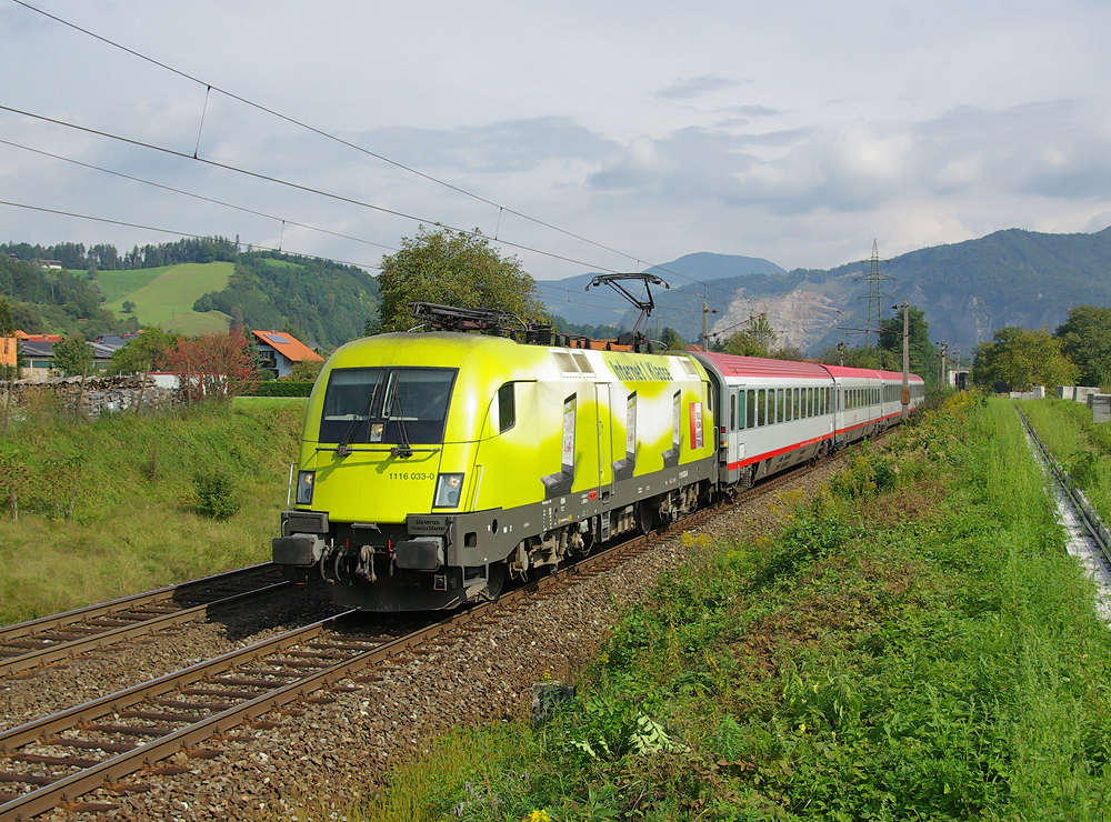 Die 1116 033  Telekom Austria  war von 2008 bis 2010 in dieser Aufmachung unterwegs und wurde Zitrone aber auch Limone gennant.