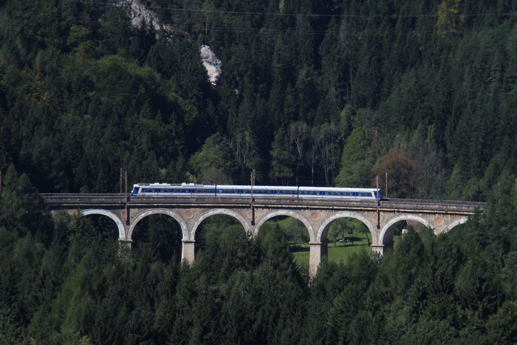 Vetron 193 903 mit einer 1144 220 vor dem DG 54703 von Wien Zvbf nach Graz Verschubbahnhof (Gi) bei der überfahrt über die Krausel Klause Viadukt; am 29.09.2012 Florian Kubele