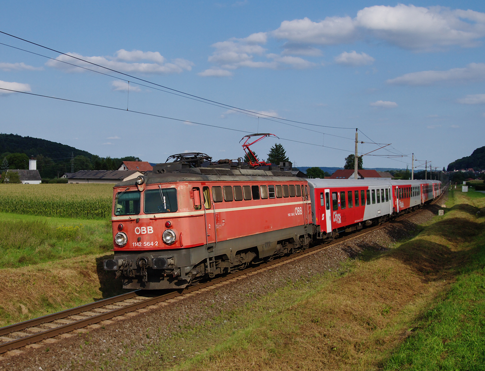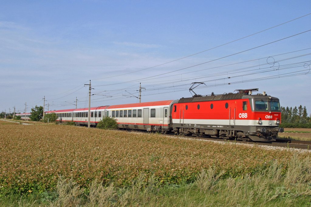 Der letzte Schnellzug am Nachmittag auf der Südbahn, der nicht von einem Taurus bespannt wird ist EC-159 "Croatia" am 23.9.12 mit 1144.205 bei Theresienfeld. andreas hansch